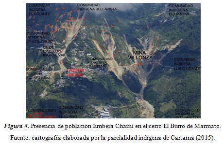 La metodología implementada para este análisis implicó la investigación documental en la medida “que permite obtener documentos nuevos en los que es posible describir, explicar, analizar, comparar, criticar entre otras actividades intelectuales, un tema o asunto mediante el análisis de fuentes de información” (Ávila, 2006, p. 50). La revisión documental se realizó a partir de informes producidos por las autoridades y las organizaciones indígenas, ONG, gobiernos, académicos y sentencias proferidas por la Corte Constitucional. Debido a la cercanía, y al contacto establecido con el cabildo de Cartama, se logró realizar una salida de campo al cerro El Burro para dialogar con algunos comuneros en el escenario de un grupo focal y realizar una observación de contexto en el lugar.