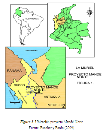 El proyecto Mandé Norte se establece en los municipios de Murindó (Antioquia) y Carmén del Darien (Chocó), desde el año 2015, mediante concesión otorgada por INGEOMINAS y contrato generado entre la Gobernación de Antioquia y la compañía estadounidense Muriel Mining Corporation con el objeto de realizar explotación de cobre, oro, molibdeno y otros minerales durante 30 años, prorrogables a 30 años más, en un área de 16000 hectáreas. Esta compañía, subsidiaria de Gold Plata Mining International Corporation y coparte de Rio Tinto de Canadá, inició un proceso de exploración en territorio con presencia de comunidades indígenas y afrodescendientes; lo que suscitó una serie de respuestas hacia el proyecto minero, que desencadenaron el retiro de la empresa (EJATLAS, 2016; Red por la Justicia Ambiental en Colombia, 2010).