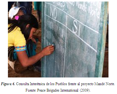 La movilización jurídica se originó en el ejercicio de la acción de tutela y en las coadyuvancias de la Defensoría del Pueblo, de la Universidad de los Andes, del Instituto Latinoamericano para una Sociedad y un Derecho Alternativos, de la Asociación Interamericana para la Defensa del Ambiente, que dieron como resultado un fallo favorable y referente para los pueblos originarios en su legítima defensa a ser consultados y a permanecer en su territorio. En paralelo, mientras se surtía el proceso judicial, los pueblos emprendieron la movilización social a partir de una acción de autonomía y resistencia en la que realizaron una consulta interétnica de los pueblos. Esta consulta estuvo acompañada por la Defensoría del Pueblo y la Comisión Intereclesial de Justicia y Paz donde participaron todas las comunidades indígenas y afrodescendientes afectadas, incluidos niños desde los 10 años. Ante la pregunta: “¿quiere o no la exploración y explotación minera de la empresa Muriel Mining Corporation?”, 798 personas votaron de manera negativa y 0 votos se obtuvieron a favor del proyecto.