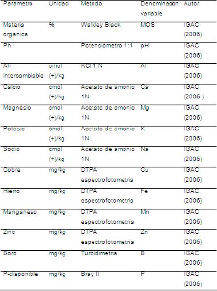 La materia orgánica (MOS) y el P se consideran como la propiedad química y el elemento más limitante en suelos ácidos de la Orinoquía (Botero, 1989); el P disponible varió entre 1 y 3 mg/kg, determinado por Bray II en suelos tropicales (Rao et al., 1999).