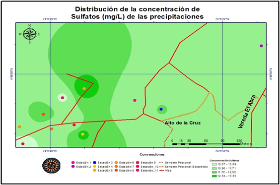 También hay que tener en cuenta que los altos valores presentados en las concentraciones de sulfatos y nitratos podrían explicarse por interferencias o por poco efecto de lavado atmosférico (ya que existió baja frecuencia de precipitación, debido al fenómeno El Niño que vivió Colombia durante el muestreo y tal vez la poca eficiencia en la transformación química de los contaminantes en la gota).