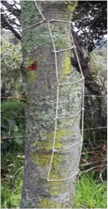 En el tronco de los árboles se colocaron mallas de 50 cm de largo por 10 cm de ancho; con subdivisiones cada 10 cm, cada una de estas puestas en orientación Norte, Sur, Oriente y Occidente, y a una altura de 50 cm (Riquelme, 2008), como se evidencia en la figura 3.