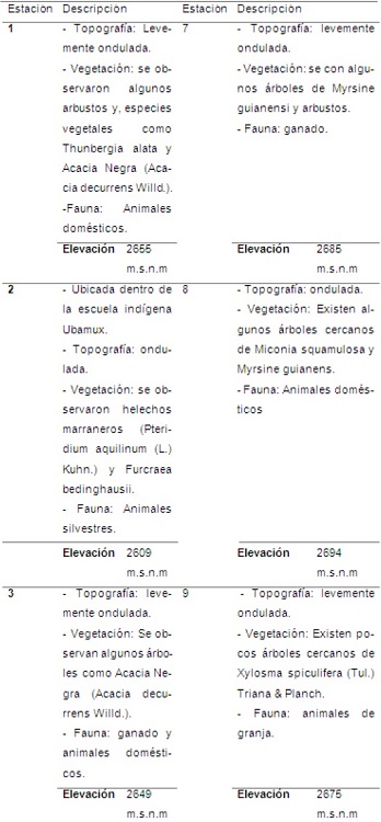 La descripción de las estaciones de muestreo se presenta a continuación: