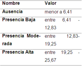Para mejorar el análisis y evaluación de los resultados del IPA se calcularon y establecieron los siguientes rangos: