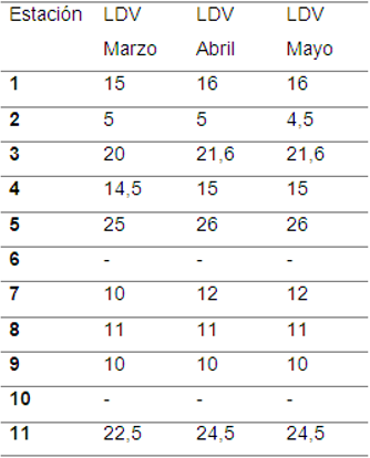 Por último se calculó el LDV mediante la ecuación 2.