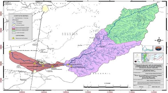 Los ríos Casacará y Manaure nacen en la Serranía del Perijá a una altura de 3.400 y 3.450 m.s.n.m respectivamente, son considerados ríos de montaña y vierten sus aguas al río Cesar. El recorrido total de la cuenca del río Casacará es de 105 Km y posee un caudal promedio anual de 7.6 m3/s con un área total de 121.600 ha de las cuales el 78% corresponde al municipio de Agustín Codazzi y un 22% al municipio de Becerril. Por su parte, la cuenca del río Manaure recorre un total de 91 Km en un área de 11.336 ha y un caudal promedio anual de 6.3 m3/s (Alcaldía de Becerril, 2010; Luquez y Ardila, 2011; Alcaldía de Manaure Balcón del Cesar, 2013).