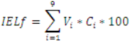 El factor de ponderación (Vi) es una función del valor de la calidad ambiental (Ci) de dicha variable, la cual depende de su estimación real. Esta función se iguala a una escala de utilidad o de valores construida cuidadosamente. La fórmula de agregación del Índice de Estado Limnológico Fluvial (IELf) es:
