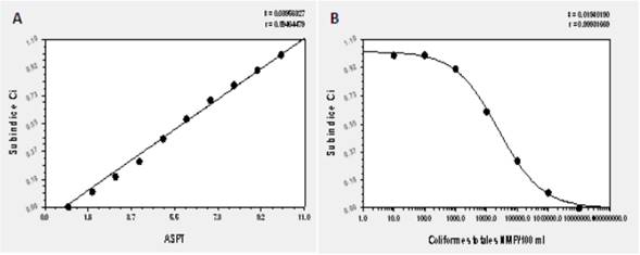 Mediante el programa Curve Expert 1.4 © (Hyames, 2013) se construyeron curvas de calidad para cada una de las variables seleccionadas. Este programa permitió seleccionar el modelo de regresión de Sperman que más se ajustó a la distribución de los valores. Además proporcionó la ecuación y el valor de los coeficientes o constantes necesarios para calcular el índice para cada río. En este caso se seleccionaron los modelos con un coeficiente de correlación >0,90. Las curvas de calidad para cada parámetro tuvieron una escala que fluctuó entre 0 y 1 (0= baja calidad y 1= alta calidad). De esta manera, dado un determinado valor de un parámetro, se puede obtener en la curva de calidad sus correspondientes subíndices de calidad (Ci). Los factores de ponderación (Vi) para cada variable se establecieron basados en estudios limnológicos y de calidad de aguas (Ramírez y Viña, 1998) y en el grado en que cada variable podría afectar o reflejar el funcionamiento de los ríos de montaña (Donato, 2008).