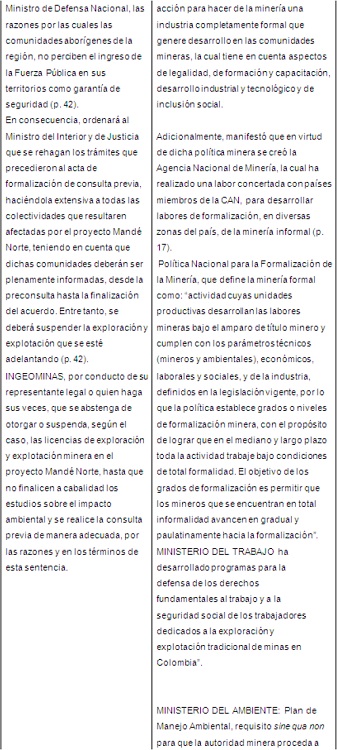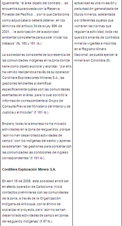 3. Estudios de caso, resumen analítico de las sentencias sobre consulta previa y extractivismo en el noroccidente colombiano