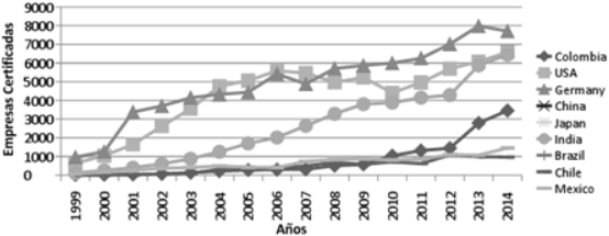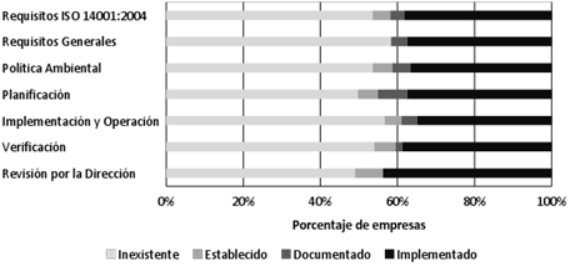 Pérez y Bejarano (2008) realizaron un análisis de la certificación ISO 14001 en Colombia e identificaron una mayor adopción en las grandes empresas (62%), que en las MIPYME (21% medianas empresas, 11% pequeñas empresas y 6% microempresas); sin embargo, reiteran que tanto para Colombia, como para los países de América Latina es fundamental la adopción de estos sistemas en las PYME.