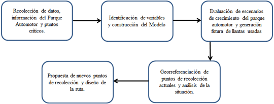Por medio de las herramientas digitales se pueden realizar distintos modelos que permiten tener un mejor manejo de los espacios y una gestión adecuada de diferentes residuos especiales como, por ejemplo, las llantas usadas. Para el diseño de esta metodología se tuvieron en cuenta algunas de las etapas propuestas por Wu et al. (2016):