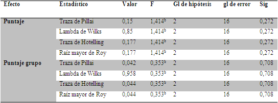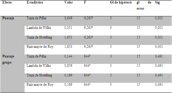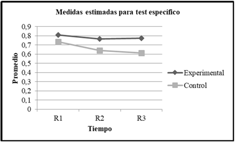 Para validar los datos se aplicó la prueba de esfericidad de Mauchly que indica que el valor del nivel crítico asociado es de 0,935 para el test general y de 0,932 para el test específico, siendo mayor a 0,05; por tanto, se considera que cumple el supuesto de circularidad y es factible trabajar con la aproximación univariada para ambos casos.
