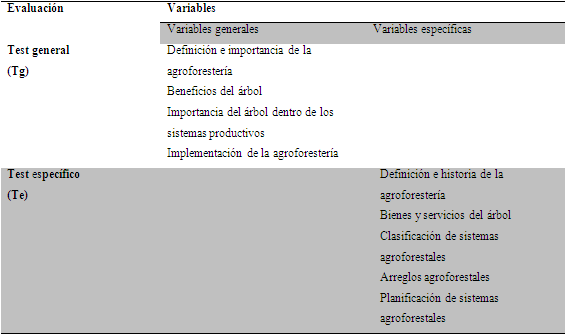 La evaluación se realizó mediante dos test, teniendo en cuenta las variables de evaluación establecidas en la tabla 1.