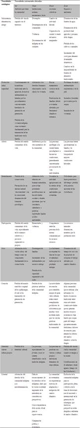 Respecto a la necesidad de creación, debido a la dedicación a otras actividades que absorben el tiempo en el trabajo, los indígenas dejan de lado las prácticas culturales (artísticas y artesanales) generando una pérdida del mundo simbólico. Esto afecta la identidad cultural a través de la modificación que opera en el sistema de creencias en los valores y en las prácticas a raíz de la desvinculación de la cultura con su territorio. En la necesidad de libertad el cambio climático incide en la capacidad de autodeterminación y autorreconocimiento y en el aumento de la dependencia hacia el Estado para su subsistencia. De igual manera, la cosmovisión indígena tiende al detrimento en los modos de vida, valores y en general del buen vivir al introducirse otros lenguajes y prácticas culturales basadas en la lógica de la explotación y la acumulación, lo que origina que los vínculos entre los seres humanos y la Tierra se vayan diluyendo o transformando.