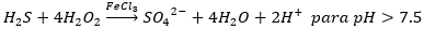 Considerando que uno de los principales contaminantes en las aguas residuales de pelambre es el sulfuro, el cual puede ser oxidado por el peróxido de hidrógeno a sulfato o azufre elemental dependiendo del pH de la solución (Tunay, Kabdasli, Arslan-Alaton, & Olmez-Hanci, 2010) dicho comportamiento se puede observar en las ecuaciones 1 y 2.