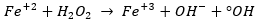 (2)De acuerdo con las reacciones y con base en el rango de pH para el cual fueron realizados los ensayos, la oxidación realizada tiende a azufre elemental como producto, por otra parte y con el objeto de acelerar la reacción del peróxido de hidrógeno para formar radicales OH* responsables de la oxidación de sulfuros y materia orgánica, se empleó cloruro férrico como catalizador y radiación UV de modo que la reacción del peróxido en el agua (Rubio-Clemente, Chica & Peñuela, 2014) se representa conforme a las ecuaciones 3 y 4.