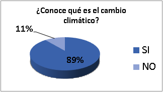 Para lograr el objetivo de la investigación era necesario indagar si los productores conocían realmente lo que es el cambio climático. De acuerdo con la Figura 1, el 89% de los encuestados dicen conocer este fenómeno, sin embargo, al ampliar la información sobre lo que ellos consideran es el cambio climático, varios participantes no responden y muchos otros no tienen total claridad de lo que este representa.