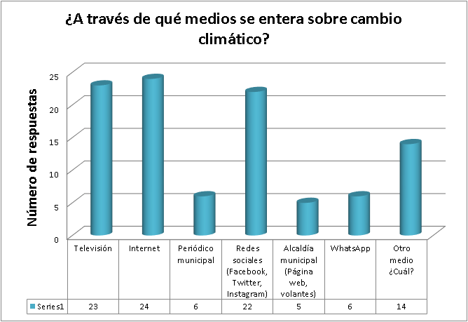 In general, it was found that, despite the fact that the community says they know what climate change is, they do not know exactly what the causes and effects of it are. Additionally, they do not know the national education, training and awareness strategy. This shows a deficiency in the dissemination of the issue, and the absence of an approach to rural communities focused on climate change education. The groups participating in this research identified that activities related to the management of climate change, such as reforestation and some talks in schools and universities, have been carried out in this municipality. It is concluded that it is of great importance to establish information and awareness actions in the population regarding mitigation and adaptation to climate change.