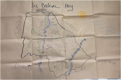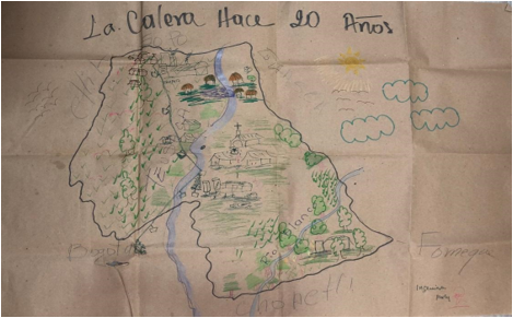 Segundo, a través del uso de la cartografía social, para identificar los cambios que ha tenido el territorio, por medio de la construcción de mapas del pasado, presente y futuro y la relación con el cambio del clima.