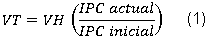 Debido a que la metodología de dicho estudio fue aplicada en el año 2013, se realizó una indexación de valores a partir del Índice de Precios al Consumidor estimado por el Departamento Administrativo Nacional de Estadística (DANE, 2019), la cual consiste en llevar un valor económico en un punto del tiempo a otro (VH), tomando el interés o índice de crecimiento (IPC) para efectuar una correcta equivalencia económica por medio de la Superintendencia de Industria y Comercio (SIC, 2012). Se utilizó la ecuación (1) para transferir el valor.