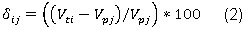 (1)Por otro lado, Brouwer muestra que es posible calcular la diferencia o el error entre el valor del estudio base y el valor transferido, a partir del valor transferido (Vti) y el valor inicial (Vpj) de la ecuación (2) (Brouwer, 2000).
