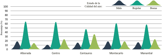 De igual manera, a partir de las entrevistas a actores expertos, se identificó la coherencia entre los niveles registrados por la Corporación ambiental y sus percepciones, puesto que establecen una “decadencia en la calidad del aire, pero que en general se conserva relativamente bueno”, lo cual puede estar atribuido a los registros de los dos contaminantes mencionados con algunos picos que superan la norma en dos estaciones de muestreo, pero a nivel general de la ciudad no se registran niveles altos de los contaminantes monitoreados.