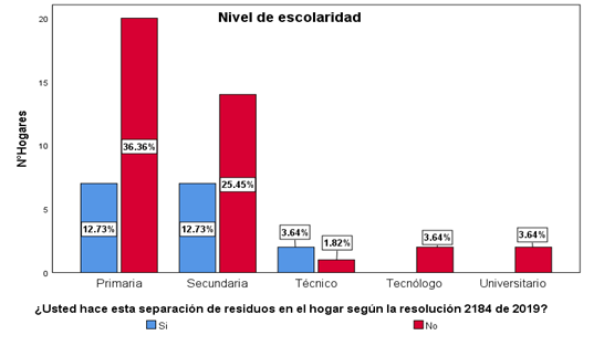 El nivel de escolaridad de las familias y la separación de los residuos de acuerdo con la resolución, se muestra en la Figura 4: