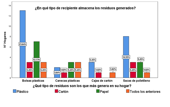 El tipo de recipiente para almacenar los residuos y el tipo de residuos que más genera, se indican en la Figura 5: