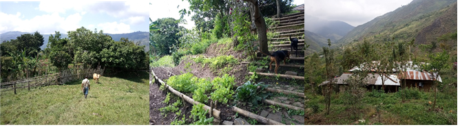 La Figura 2 ilustra algunos de los Tul Nasa ubicados en el municipio de Toribío, destacando la biodiversidad de especies animales y vegetales y su disposición alrededor de la casa.