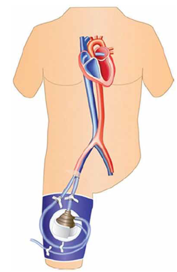Disponible para su utilización desde el año 1972, supliendo la función tanto cardíaca como pulmonar, dado por el hecho de que la sangre no oxigenada es extraída del organismo mediante un sistema de cánulas y luego de su paso por un oxigenador es devuelta a la circulación sistémica. Este oxigenador es un dispositivo intercambiador de gases que de manera directa oxigena, mientras remueve el dióxido de carbono sanguíneo. El flujo sanguíneo es generado por una bomba centrífuga con alta velocidad de la sangre, generando el mínimo trauma posible de los componentes sanguíneos20, aportando un flujo continuo, no pulsátil de hasta 3,5-4,5 litros/ minuto y oxigenación extracorpórea.