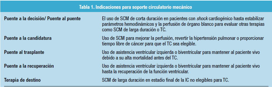 Tanto, los dispositivos de asistencia ventricular (DAV) de corta duración como los de larga duración, han tenido un gran desarrollo en los últimos años; hoy en día su indicación se encuentra bien delimitada como terapia de puente a la recuperación, puente al TC, puente a la decisión, puente a la candidatura o terapia de destino (Tabla 1).
