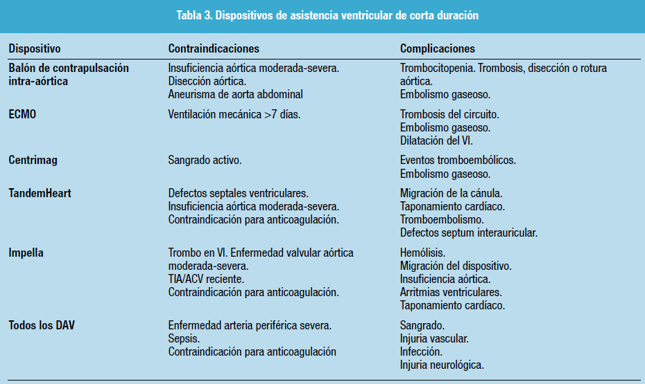 Aunque su eficacia en el marco del shock cardiogénico es controversial16, ya sea como un puente a la recuperación o al TC, continúa siendo un tratamiento de amplia utilización por su mayor disponibilidad al compararlo con otros dispositivos de SCM. Su implante es de menor complejidad, menos invasivo y presenta menor riesgo de complicaciones. Puede mejorar la función cardíaca, disminuyendo la poscarga y mejorando la demanda de oxígeno por el miocardio. Su principal desventaja es su incapacidad para reemplazar la función cardiopulmonar, tanto de manera parcial como total.