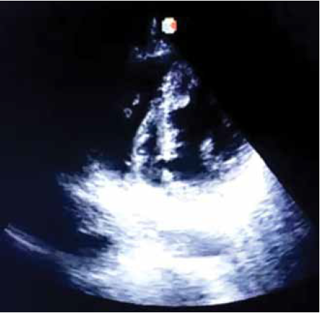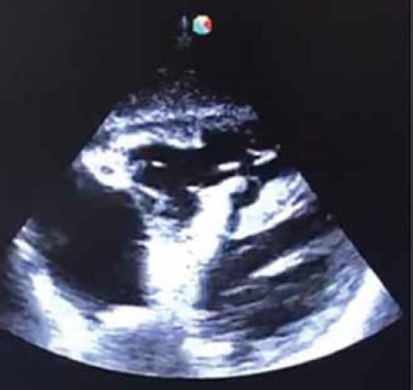 Después de 10 horas, el paciente desarrolló hipotensión severa y disnea de reposo (CF IV-NYHA).