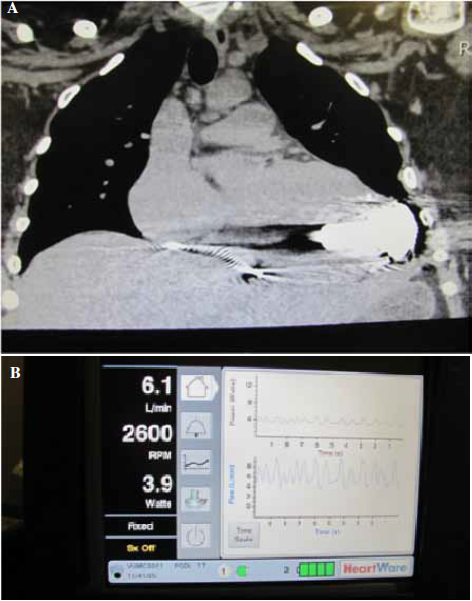 En el período del estudio resultaron implantados 68 DAVI, siendo excluidos 4 pacientes por diversas razones, representando los 64 restantes la población del estudio. Cincuenta y siete (89,1%) pacientes recibieron un dispositivo Heart Mate II (St Jude Medical, St Paul, MN, USA) (Figura 1) y los otros 7 (10,9%) pacientes un dispositivo HeartWare (HeartWare Inc, Framingham, MA, USA) (Figura 2), realizándose concomitantemente al implante del DAVI, 2 plásticas mitrales y 2 reemplazos valvulares mitrales en el mismo acto quirúrgico. Cincuenta y tres (82,8%) pacientes recibieron el DAVI como puente al trasplante mientras que los 11 (17,2%) restantes fueron utilizados como terapia de destino.