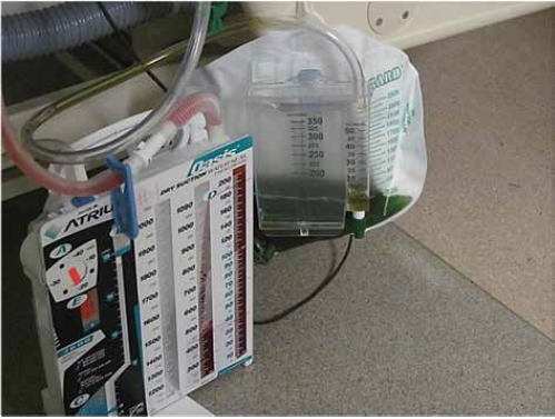 En todos los pacientes tratados con AM se evidencio el cambio de coloración de la orina, que se tornó verde o azulada (Figura 3). Cinco (7,8%) pacientes presentaron hipertensión arterial a posteriori de la infusión del AM, requiriendo del empleo de vasodilatadores endovenosos, 3 (9,1%) pacientes en el grupo AM frente a 2 (6,4%) pacientes en el grupo control (valor de P=0,3).