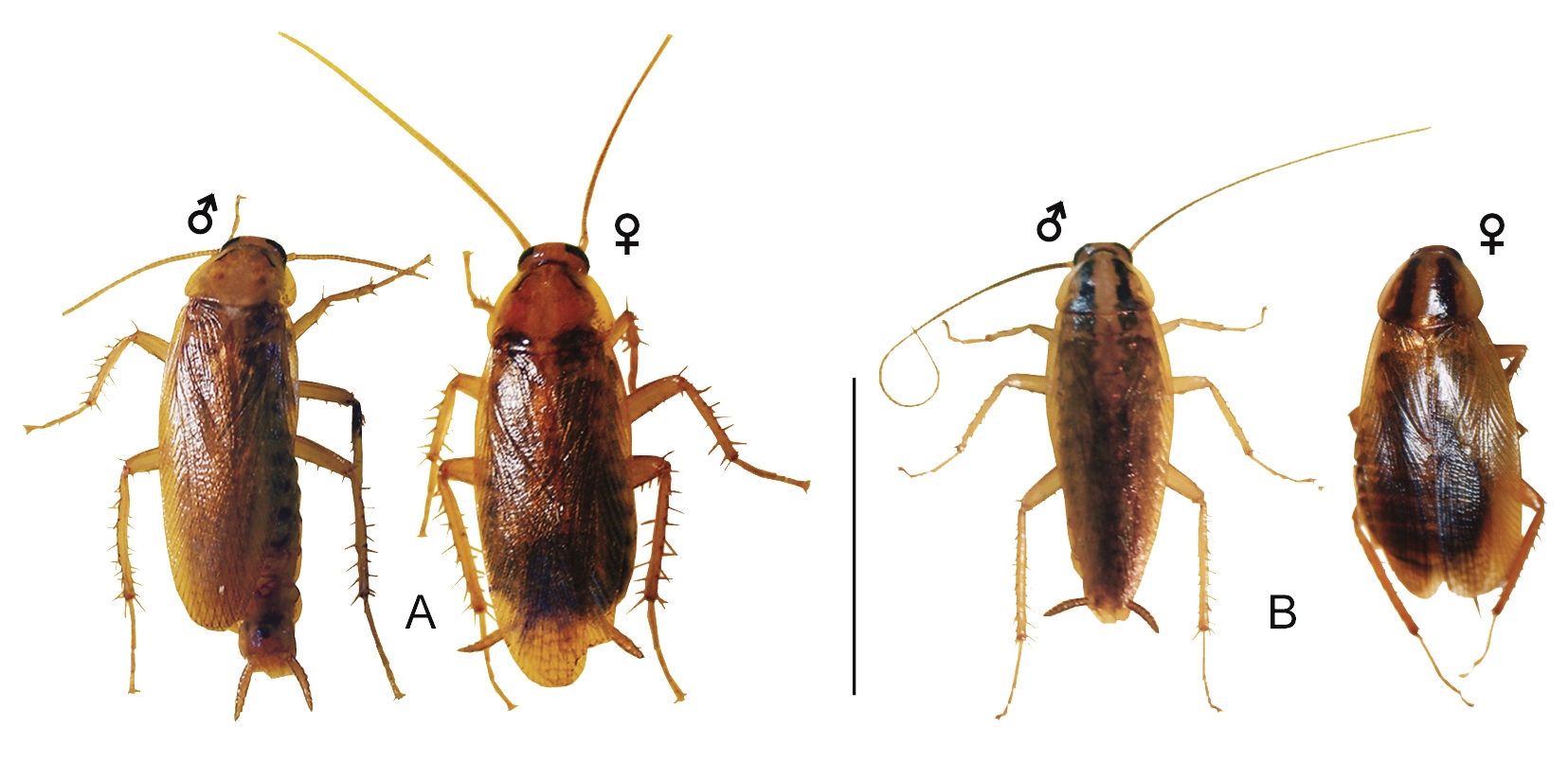 Blattella germanica. A. Morph described by Roth (1985). B. Characteristic phenotype of the species.