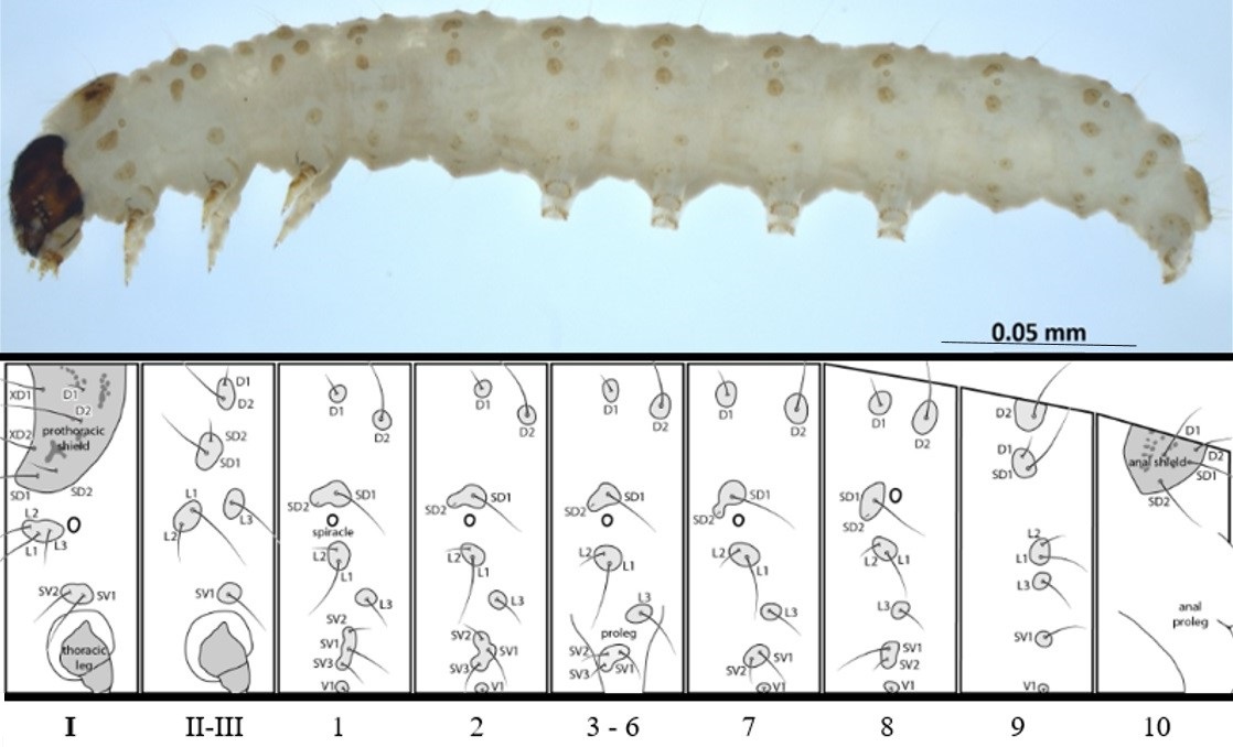 Weisman, D.M. (1986) Keys for the identification of some frequently intercepted lepidopterous larvae. U. S. Department of Agriculture, APHIS 81-47.