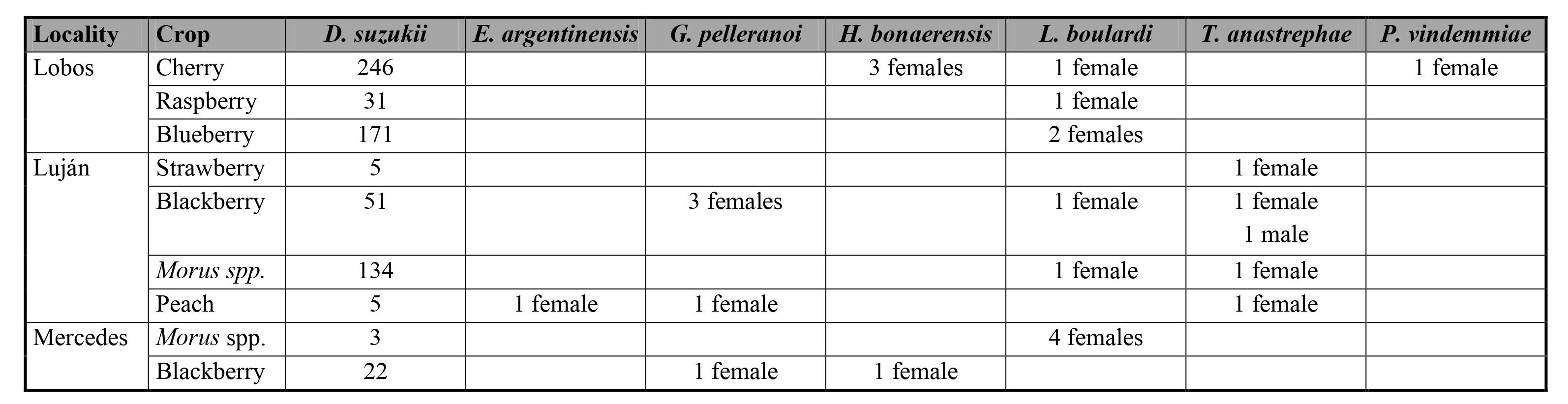 Keywords: Fruit crops, Parasitoids, Pampean biogeographic province, Spotted-wing Drosophila.