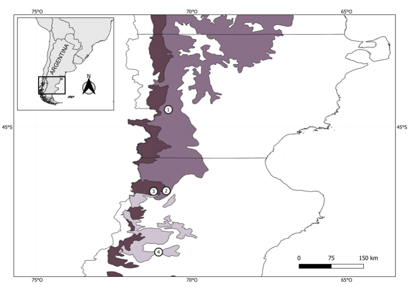 We acknowledge Ministerio de Comercio Exterior, Turismo e Inversiones (Dirección General de Recursos Naturales, Consejo Agrario Provincial) and Ministerio de Industria, Agricultura y Ganadería (Dirección de Fauna Silvestre) of Santa Cruz province (Argentina) which awarded us a collection permit; Rodolfo Carrara, Sergio Roig-Juñent and Nicolás Martínez Román for their assistance in the field; Diego Miras for taking the picture at IADIZA; Lucas Castelli for his help with QGis; Violeta A. Silvestro and Jaime Pizarro-Araya for suggestions improving the manuscript. This study was supported by the Consejo Nacional de Investigaciones Científicas y Técnicas (CONICET, Argentina), PIP 112-201101-00987 (CONICET, Argentina), PUE-IPEEC-CONICET N◦ 22920160100044, and the grant “Preservación, recuperación y digitalización de colecciones de interés científico de Argentina 2023" (Fundación Williams and Fundación Bunge y Born).