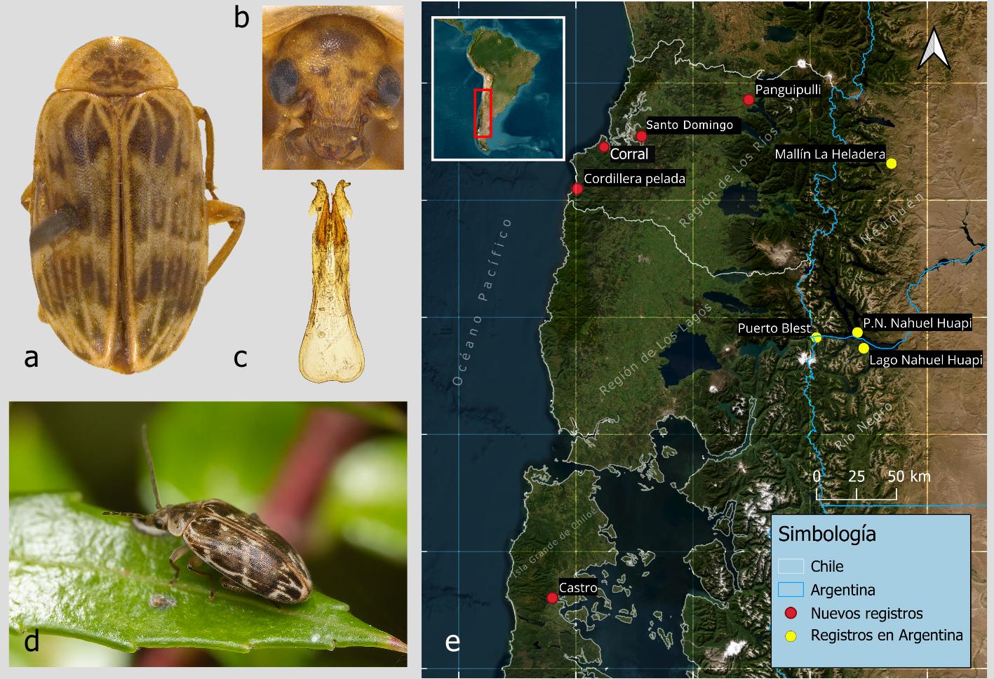Agradecemos a Mario Elgueta, curador del Área de Entomología del Museo Nacional de Historia Natural Chile (Santiago, Chile) y a Cristian Montalva, curador de la Colección Entomológica Ernesto Krahmer (Valdivia, Chile) por facilitar los ejemplares y las dependencias para realizar esta publicación. El primer autor agradece el entorno de investigación proporcionado por el Laboratorio de Salud de Bosques de la Universidad Austral de Chile. Agradecemos a Philippe Moisan por facilitar el uso del equipo fotográfico. Agradecemos a los revisores anónimos por enriquecer este manuscrito con sus conocimientos. Agradecemos a Matías Gargiulo y Elizabeth Salgado Barria por facilitar las fotografías de los ejemplares in situ.