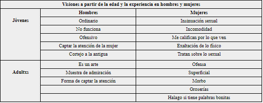 a. Visión genérica y generacional del piropo en espacios públicos.