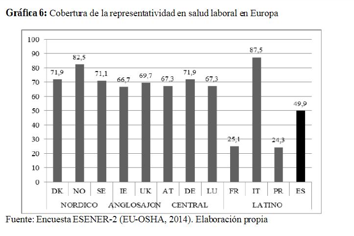 Gráfica 6: Cobertura de la representatividad en salud laboral en Europa