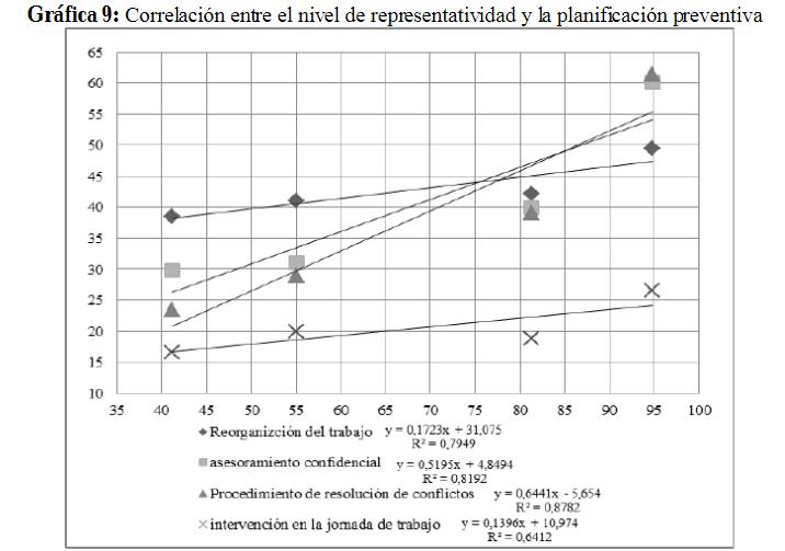 Gráfica 9: Correlación entre el nivel de representatividad y la planificación preventiva