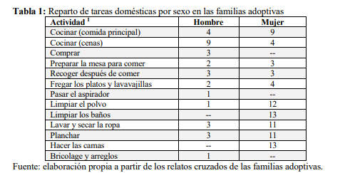 Tabla 1: Reparto de tareas domésticas por sexo en las familias adoptivas