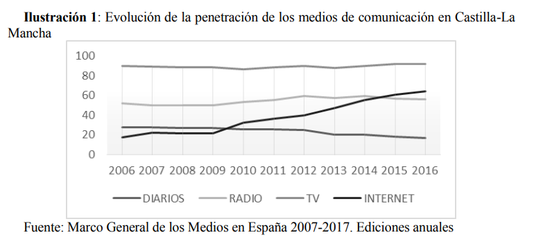 Ilustración 1: Evolución de la penetración de los medios de comunicación en Castilla-La Mancha