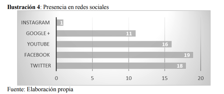 b) En el indicador de redes sociales se ha buscado valorar el grado de adaptación del medio a la web 2.0. Para ello, se han registrado todas las redes disponibles de cada medio; su número de seguidores o suscriptores en las más importantes (Twitter, Facebook y YouTube); si han incorporado otras redes sociales más novedosas para compartir contenido como Whatsapp, Instagram o Snapchat; si cuentan con una aplicación móvil y si incluyen blogs.
