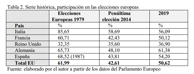 Tabla 2. Serie histórica, participación en las elecciones europeas
