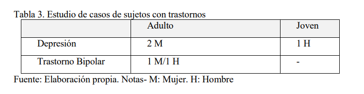 Tabla 3. Estudio de casos de sujetos con trastornos