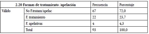Las formas de tratamiento también tienen una frecuencia importante, aparecen en casi todas las emisiones junto con otros procedimientos: