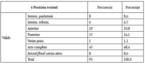 Como adelantábamos en la sección de Metodología, se planteó un séptimo nivel para facilitar el análisis estadístico, correspondiente a la Aparición inicial y final de distintos atenuadores en un mismo acto atenuante.